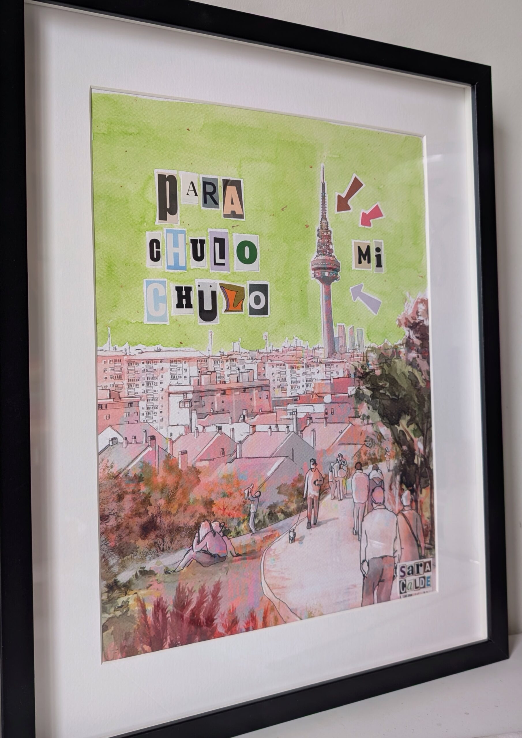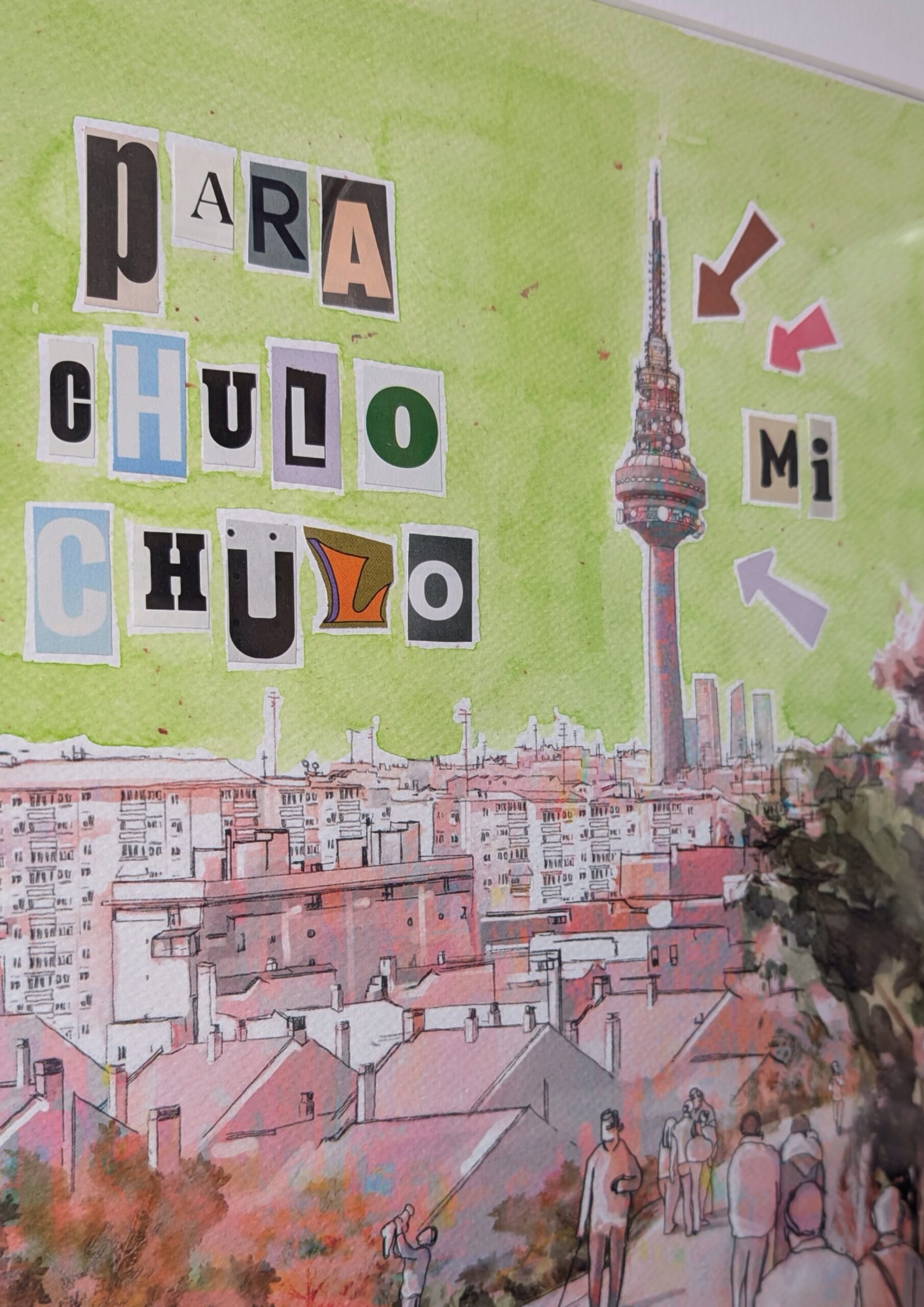 Ilustración digital intervenida con acuarela y collage. Obra única.